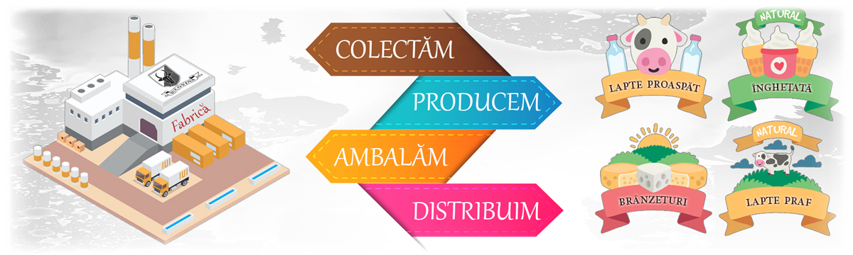 Compania deține o fabrică de produse lactate și înghețată în comuna Șcheia, județul Suceava iar în orașul Fălticeni, județul Suceava o fabrică de lapte praf, unt și brânzeturi. Asigurarea aprovizionării cu lapte (materie primă) se efectuează de la producători locali și de la ferme autorizate din județele Suceava, Botoșani și Neamț.